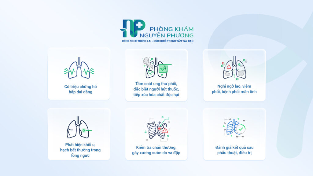 - Nghi ngờ lao phổi, viêm phổi nặng, tràn dịch màng phổi, bệnh phổi tắc nghẽn mãn tính (COPD) hoặc giãn phế quản.