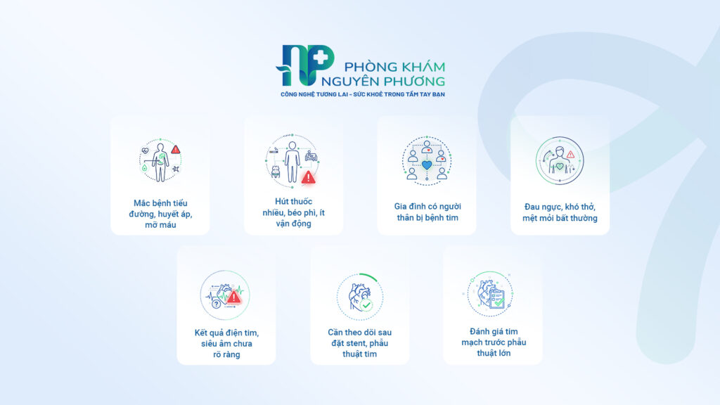 - Đã can thiệp tim mạch (đặt stent, phẫu thuật bắc cầu) cần kiểm tra sau điều trị.
