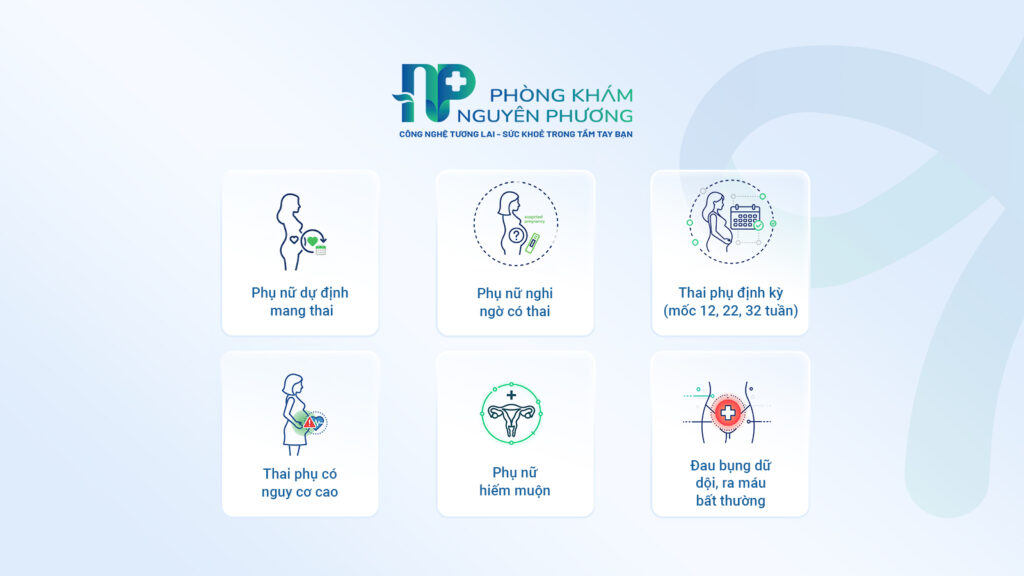 - Phụ nữ nghi ngờ có thai: Xác định vị trí thai, tuổi thai và tim thai.