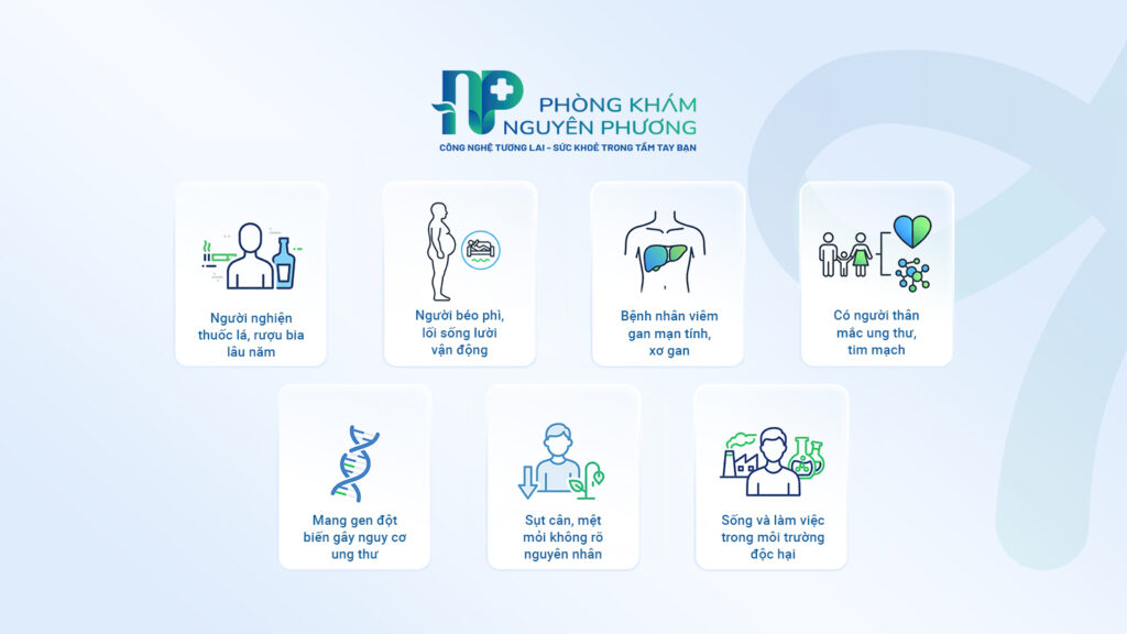 - Nguy cơ gan mật: Người nhiễm viêm gan B, C mạn tính hoặc có dấu hiệu xơ gan. Yếu tố di truyền: Gia đình có người thân