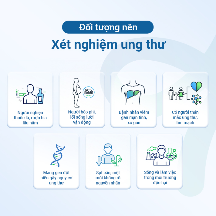 Giải pháp tầm soát đa điểm giúp phát hiện sớm các dấu ấn ung thư tiềm ẩn trong cơ thể. Đồng thời, kết quả xét nghiệm đóng vai trò then chốt trong việc nhận diện nguy cơ mắc các bệnh lý ác tính phổ biến (gan, phổi, dạ dày…), giúp bạn chủ động can thiệp và điều trị ngay từ giai đoạn khởi phát.